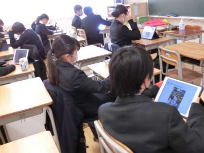 5時間目の学活は、学年全体でのレクを松坂先生が企画してくれました。Teamsで音声をつなぎながら、ロイロで画面配信したり提出をしたりと、タブレットフル活用で行いました。