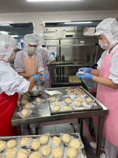 今日は、給食で肉まん作りにチャレンジしました!皮は、朝から発酵させてホカホカ、中身の具も、ぜーんぶ手作りです。