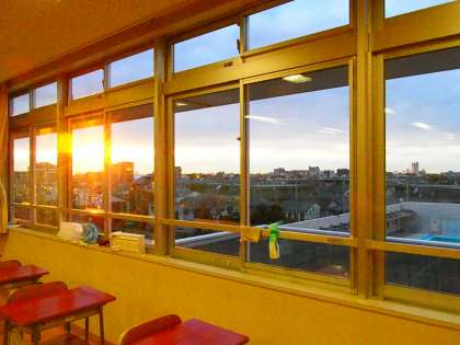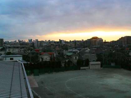 東の空にひろがる雲の切れ目から見える朝陽がまぶしい今朝のフナキボです。