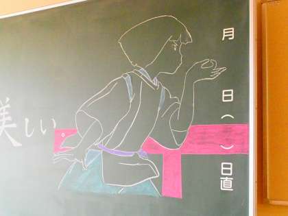 10期生の教室黒板には、受験生の気持ちが反映されています。昨日のアートの続きも描いてありました。
