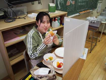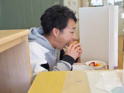 フナキボの先生たちも、縁起のよいメニューをいただいています。ボリュームのあるカツサンドは食べ応え十分です。