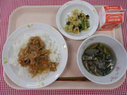 「根菜汁」は、ごぼう・大根・にんじん・さといも・玉ねぎを入れて具だくさんにしました。根菜は食物繊維が豊富で、腸内環境を整えてくれる働きがあります。良く噛んで、体の中からきれいになりましょう。