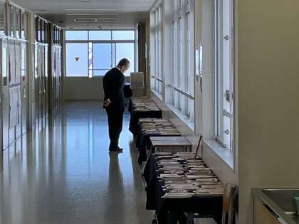 授業中の廊下でホームページ更新のネタ探しをする校長先生の姿を発見しました。いつも写真を撮る側なので写る側はレア。生徒のみなさん、実はこうして生徒のことを見守っているんですよ!