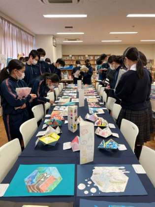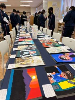 学年ごと、3日間に分けて全ての展示を見学して回りました。まだまだ見ていたい!けれど月曜日に撤収です。学校を華やかにしてくれてありがとう。来年こそは保護者の皆様に公開したいと願っております。(岩崎)