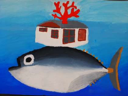 「巨木の幹が別世界につながる扉になっている」まさに夢の世界ですね。真ん中は、ルービックキューブのように場所が変わるそうで「毎日お隣さんが変わる」そうです。楽しそうだなあ。そして「止まらないまぐろの家」無料で世界中どこでも行けるとのこと。実に面白い発想です。でも、家から出たいときはどうするのかな?と心配が。まっ、いいでしょう、そんなことは。