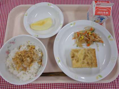 ごはんに手作りのツナふりかけをたっぷりとかけていただきます。