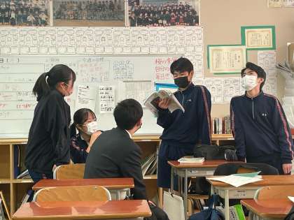 2年生は明日に控えた学年末考査に向けて休み時間も友達同士で問題を出し合っていました。勉強をする雰囲気が高まっています。頑張って!