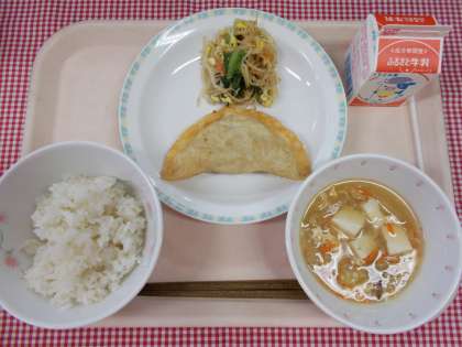 「ジャンボぎょうざ」は、リクエスト給食でも人気のメニューです。今日も1つ1つ手作りで作っています。