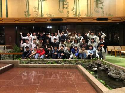 ?入浴前に撮影している集合写真。「はい、笑って??」とカメラマンさんの声に応える10期生。そのすぐ横では、今回の旅行の添乗員の方が明日の行程の確認を念入りにやっていました。コロナ禍の修学旅行は、普段の何倍もの労力がかかるもの。このような方の努力があってこその修学旅行であることを改めて感謝したいと思います。