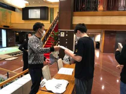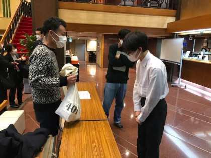 出発に先立ち預かっていた貴重品を返却査定ますが、なかなか取りに来ない班も。出発直前に取りに来た班が注意を受けています。が、もちろん「すみません」とすまなそうに取りに来たのであたたかく注意をします。