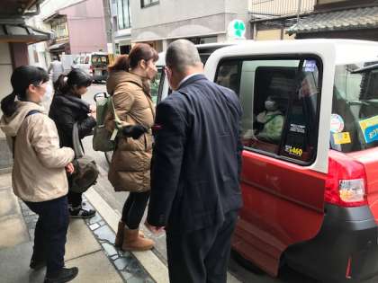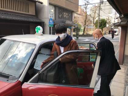 生徒を送り出した後は先生たちもそれぞれタクシー行動のタクシー行動です。生徒が立ち寄りそうなところに行くグループや先に京都駅に着いて準備をするグループも。次は京都駅集合場所で会いましょう。