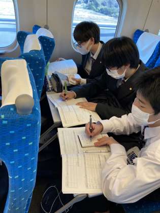 帰りの車内でもちゃんとしおりの記入をしている生徒です。フナキボ生してますね??。