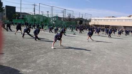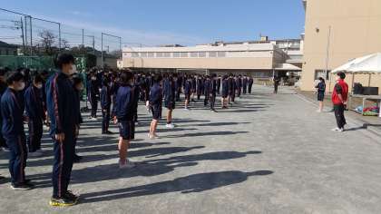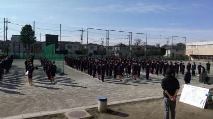 1年生の球技大会、開会式の様子です。体育委員の皆さんが朝から準備を進めてくれました。どのクラスも頑張ってください。(田村)