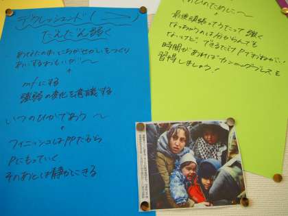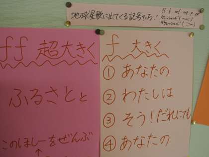 「歌詞の意味を考えて歌おう」と新聞記事を添えて貼りだしているクラスを発見!新しい新聞活用の方法を見いだしていますね。すばらしい!