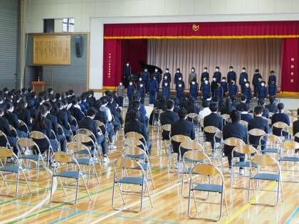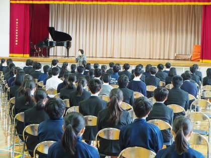11期生のリハーサル終盤に体育館へ。体育館の重い扉をあけた瞬間、体育館に張りつめた空気。まさに「フナキボ合唱リハ−サルの雰囲気」そのものです。音楽科の先生の講評を聞く姿と他のクラスの合唱を聞く姿勢にまったく違いがない。これもフナキボ流です。