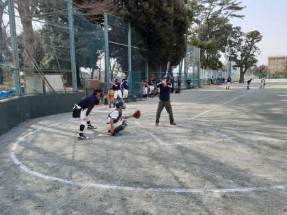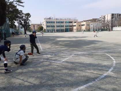 砧中学校の校庭をお借りして送別試合を行っています。