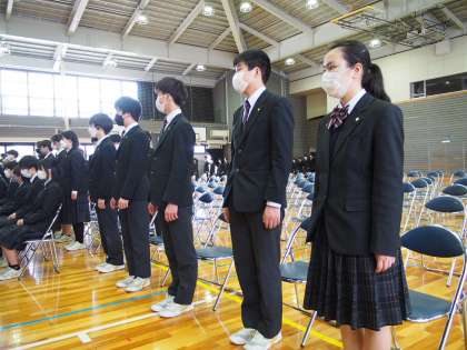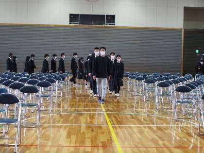 明後日に迫った卒業式。今日の午後、体育館で予行が行われました。入場から退場まで今日が始めてのことも多くありましたが、生徒はきちんと参加していました。さすが10期生です。