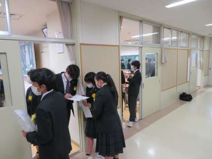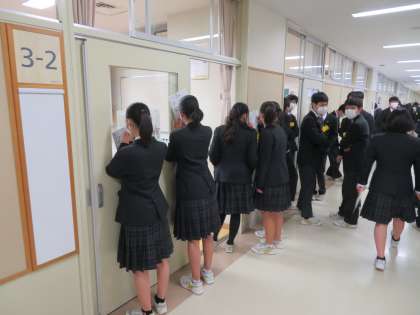 卒業式前の休み時間の様子です。それぞれ、卒業アルバムの寄せ書きを書いたり、友だちと話したりと、それぞれ中学校生活最後の日を楽しんでいます。