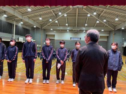 今年度最後の学年集会、最後に嬉しいサプライズがありました。生徒たちから先生一人一人へプレゼントが!幸せな時間でした。
