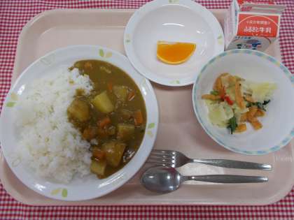 新年度最初の給食は、米粉のカレーライスでした。