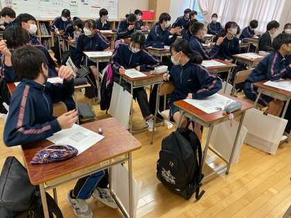 三年生の社会科では公民の授業がスタートしました。第1回は情報化について。四つケースのあやしい点はどこか考えました。