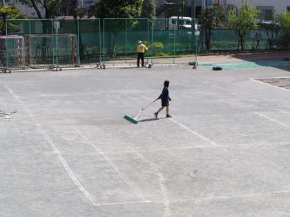 休日の部活動の様子を撮影しようと、学校にやってきましたが、すでに硬式テニス部は後片付けに入っていました!残念。。。。でも仮入部が終わると、部活動も本格スタートです。先輩、頼みましたよ。後輩の面倒をみてくださいね。