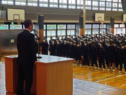 全校朝礼(1・3年)学校長の話