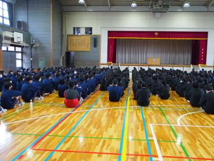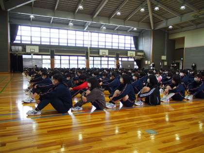8時21分過ぎの体育館。すでにこの静寂。そして、11期生の隣に13期生が先輩を見習って静に時を待っていました。