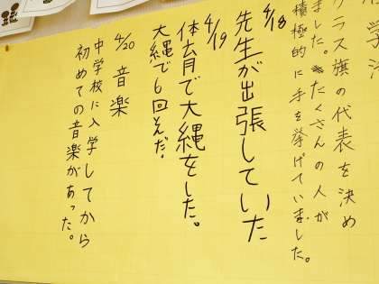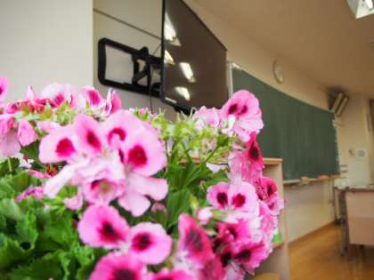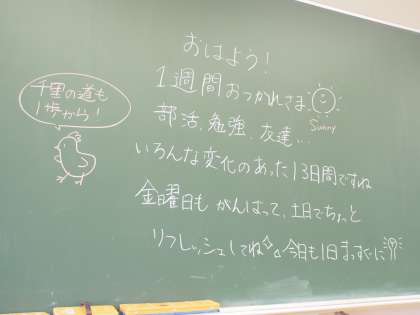 各教室には担任のメッセージや掲示物そして、鉢植えなど学校がスタートして間もない不安な気持ちをサポートするものがたくさんあります。