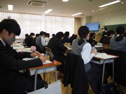 週末金曜日。疲れが出てくる頃ですが、どの学年の生徒も真剣に授業に参加しています。今日、フナキボを訪れた教育委員会の指導主事の先生も、フナキボ生の真剣なまなざしを褒めていただきました。