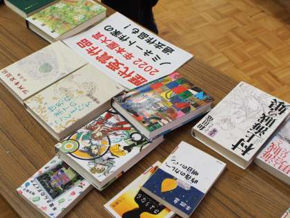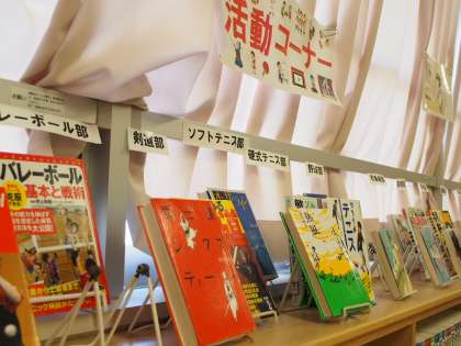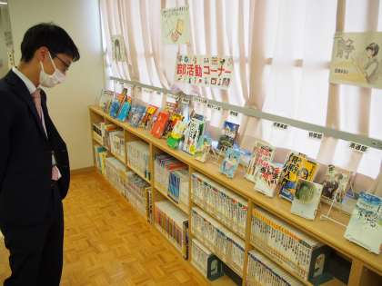指導主事の先生が授業後に立ち寄ったのが、フナキボ図書室。タイムリーな本の紹介コーナーや企画展など、充実した内容に感動していました。