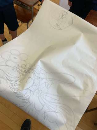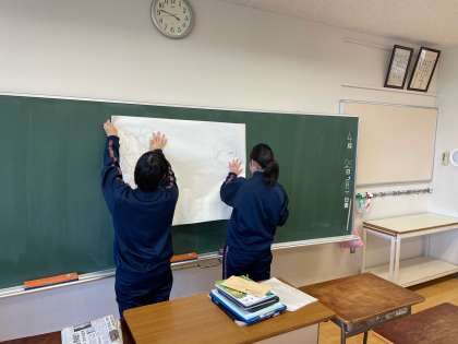 掲示用の学級目標作りが進んでいます。作業をしてくれているのは有志の二人。完成が楽しみです!