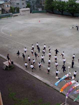 どんより曇り空のフナキボですが、校庭には鯉のぼリが泳いでいます。そして各クラスの掃除ロッカーの上では、今日も勢いよくサーキュレーターが稼働し、フナキボ生の健康を守ってくれていました。