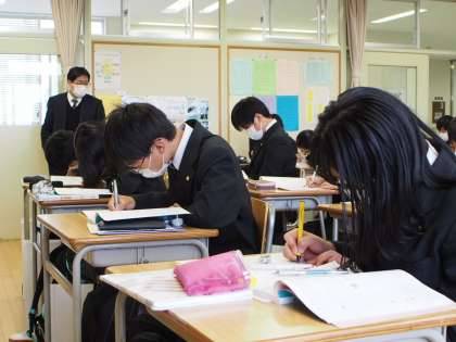 13期生が数学の「加法と減法の混じった計算」を学んでいます。アドバイスをもとに、どうしたら早く計算ができるかを工夫しています。