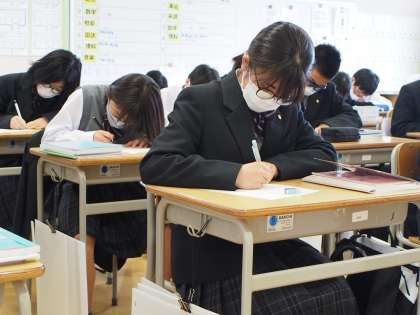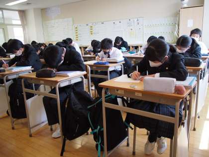 13期生の数学授業の様子です。最初に簡単な計算問題を決められた時間内で解くトライアル問題に挑戦しています。