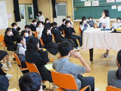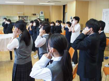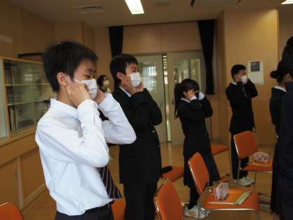 13期生の音楽の授業です。まずは発声から。顎の付け根を意識した声だしを真剣に取り組んでいます。