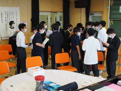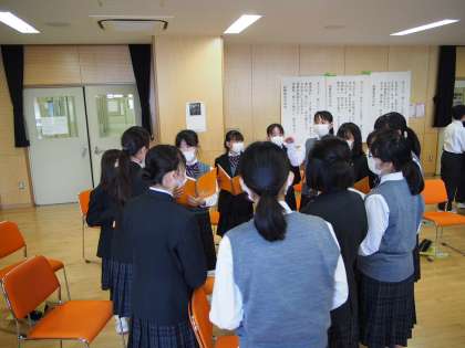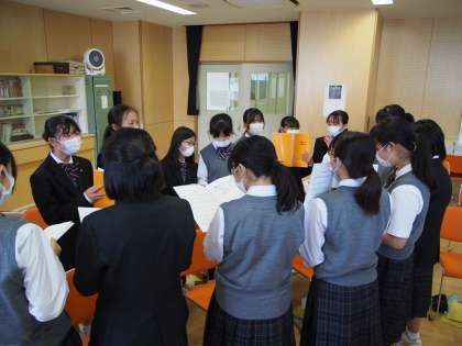 今日のメインは校歌を歌うこと。まずは男女に分かれて3分間の作戦会議です。すぐに輪になり作戦を練り、歌い始める女子。男子はというと…。先生によると「クラスごとに全く違います」とのこと。クラスカラーが出る瞬間です。