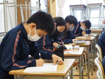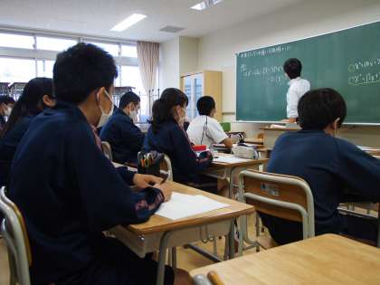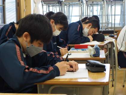 11期生の数学授業です。2、3年生は少人数授業の形態をとっているので、このクラスの人数は11名。まさに‘少人数’。でも集中力はいつものフナキボ生です。