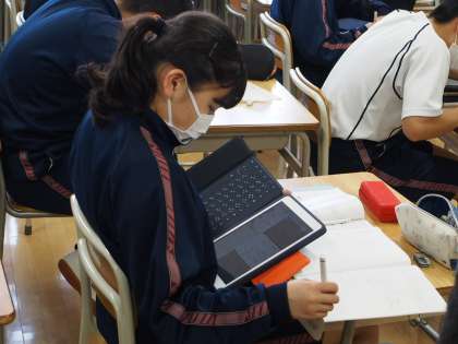 因数分解は間違えやすいボイントが多いので、黒板には黄色いチョークで色分けされた「point」の欄が書かれています。そして、最後の答え合わせはロイロノートでします。う〜ん、時代ですね。