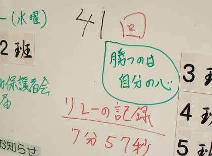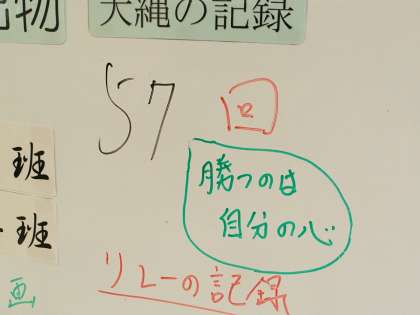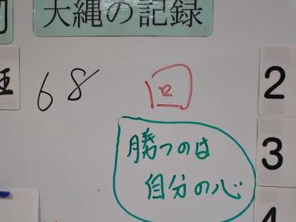 12日の学校日誌で自分の心に打ち勝ち、大縄の回数に変化が見られたクラスのその後が気になったので行ってみました。おっ、確実に進歩していますね〜。
