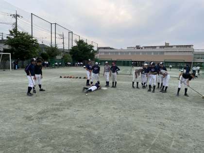 練習の最後はヘッドスライディング!泥んこになって楽しそうでした。 (石塚)