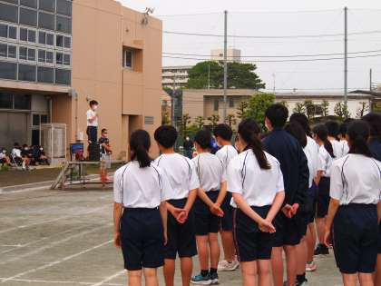 6時間目の交流会では先輩から大縄跳びへの熱い情熱を教えてもらった1年生。本番までにそれを自分たちのものにしたいですね。最後に体育委員長からも激励の言葉をもらいました!