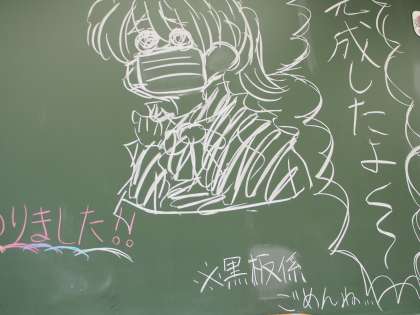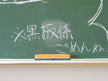 あるクラスに行くと黒板に「完成したよ〜」という喜びを表現する文字がありました。とよく見ると、黒板係さんへの配慮の文字も添えられています。「せっかくきれいにしてくれたのにチョークで書いてしまって申し訳ない」こんな気遣いができるクラスはきっと運動会も頑張れること間違いなしですね。