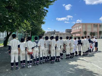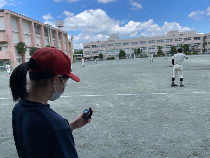 野球部は新一年生が10名入り、25名になりました。試合に出るメンバーだけでなく、ベンチワークの選手も全力です。新一年生が時間を計り、スタメンがアップを素早く終えることができました!