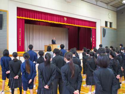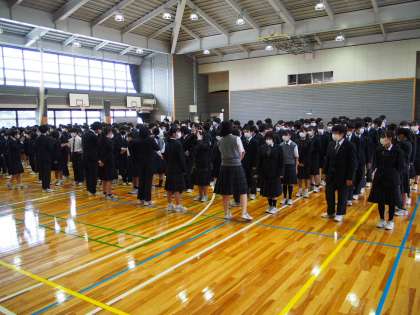 最後にお願いです。この中には運動が得意でない生徒,運動会が苦手な生徒もいます。もしかすると、6月4日が近づくにつれ辛く感じているかもしれません。そんな生徒も当日を終えて「やってよかった」と思える運動会にしてほしいと思います。そのためには、自分自身を乗り越える勇気とそれを応援する友だちの励ましが必要です。みんなで声を掛け合い、11回目の運動会を成功させてください。
