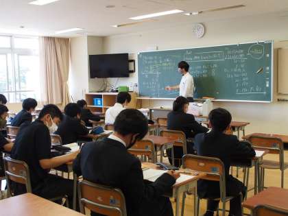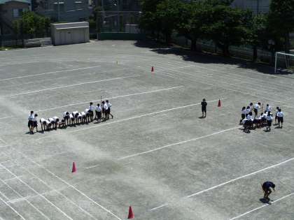 12期生の数学は少人数展開のため、3クラスに分かれています。同じフロアで授業をしているので、他のクラスにも行ってみました。案の定、どのクラスも真剣で授業に打ち込んでいました。4階の窓から校庭を見ると、13期生が学年種目に前向きに取り組んでいました。