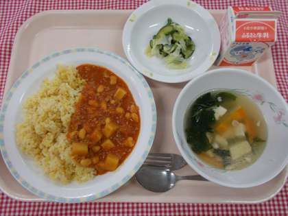 チリビーンズライスは、カレー粉やトマトピューレをご飯に炊き込んでいます。また、チリビーンズソースと合わせると、16種類もの調味料やスパイスを使っています。ピリッとした辛さに食欲が刺激されたのか、とてもよく食べてくれました。