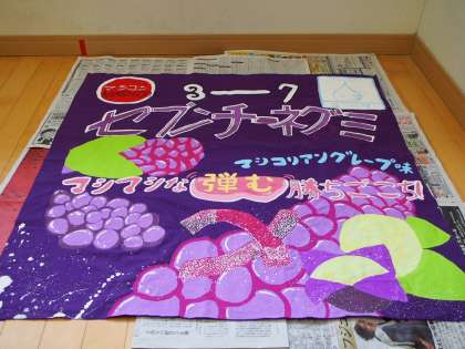 昨日の放課後も応援旗を描いているクラスがありました。特に念入りに作業していたのがこのクラス。んー納得!