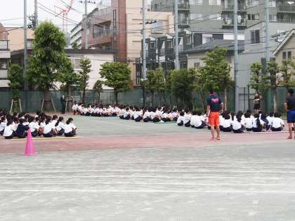 12期生が学年練習を始めました。クラスごとに並び説明を聞き、次に入場隊形に整列して待機、そしてコースへ。すばらしいのは、この間「おしゃべりやめて」という大きな声を先生からまったく聞かれなかったこと。かといってもらろん話し声がしないわけではなく、メリハリがしっかりついていました。フナキボ生としては当たり前?ではありますが改めてすばらしさを実感しました。