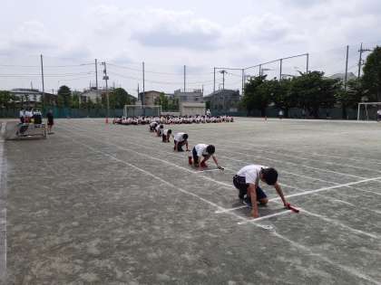 全員リレーのスタートです。 緊張の一瞬! 宮内